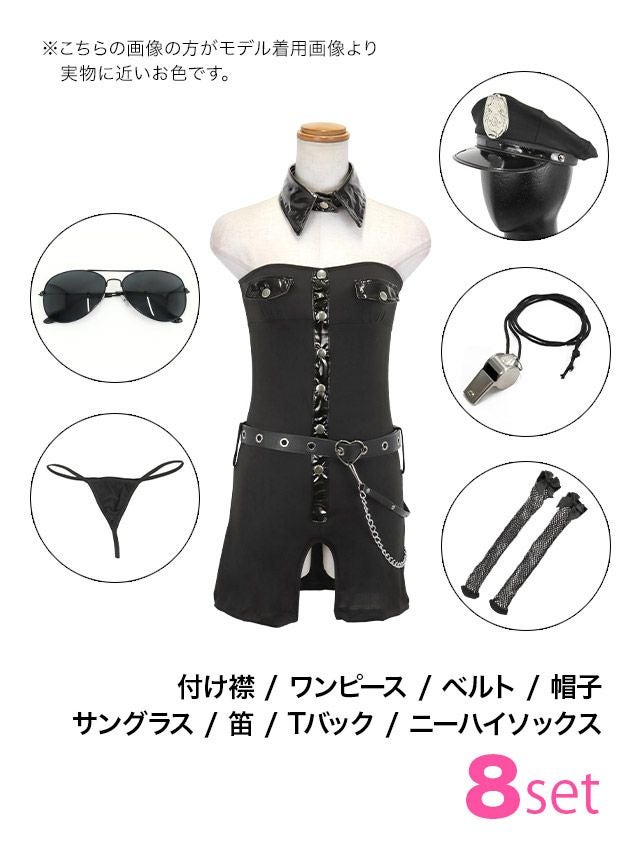 [コスプレ] ポリス コスプレ ベア タイト ミニスカ セクシー ツイン 8点セット (付け襟/ワンピース/ベルト/帽子/サングラス/笛/Tバック/ニーハイソックス) ゆりにゃ×戦慄かなのTikaコラボ