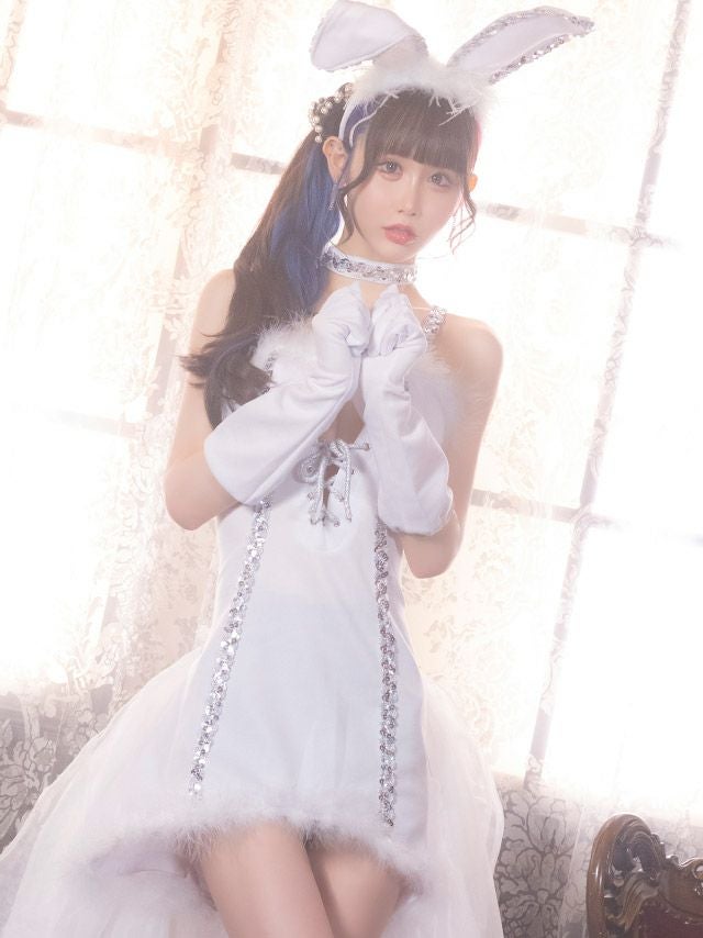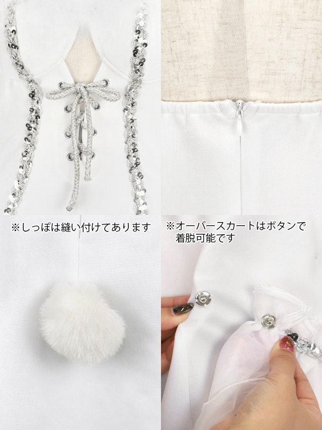 2Wayの着こなしを楽しめる♪ [SUPER SALE] コスプレ イースター バニー コスプレ 2way ふわふわフィッシュテール キラキラスパンコール タイト バニーガール 5点セット (ワンピース/チョーカー/オーバースカート/カチューシャ/ロンググローブ) ゆりにゃ×戦慄かなのTikaコラボ