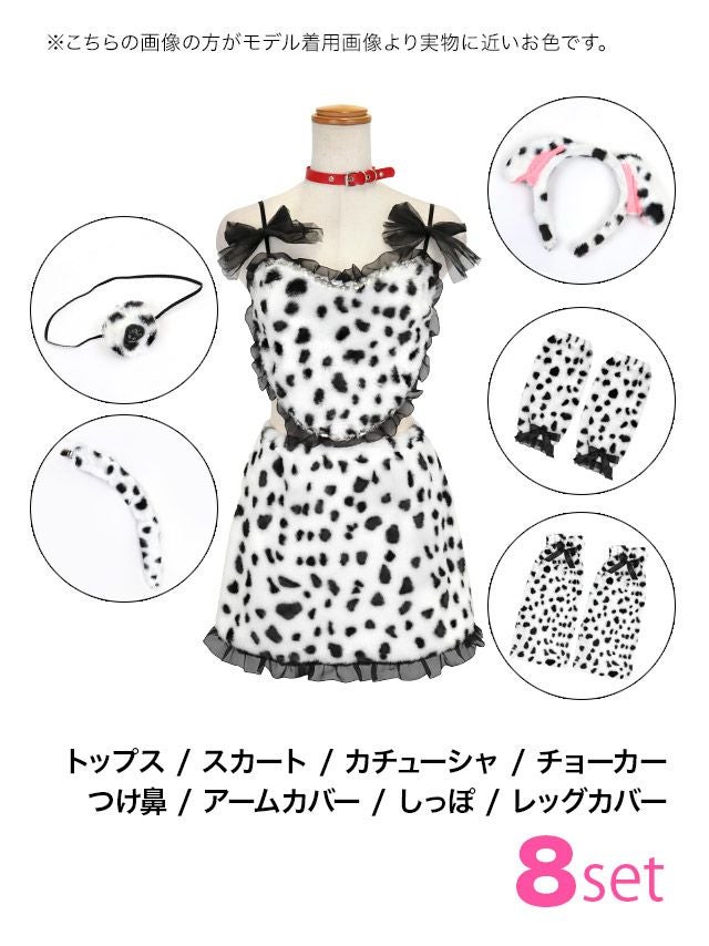 なりきり度&気分も上がる♡ [コスプレ] コスプレ ダルメシアン もこもこ ハート チュールリボン ビジュー へそ出し ガーリー アニマル 8点セット (トップス/スカート/カチューシャ/チョーカー/付け鼻/アームカバー/しっぽ/レッグカバー)