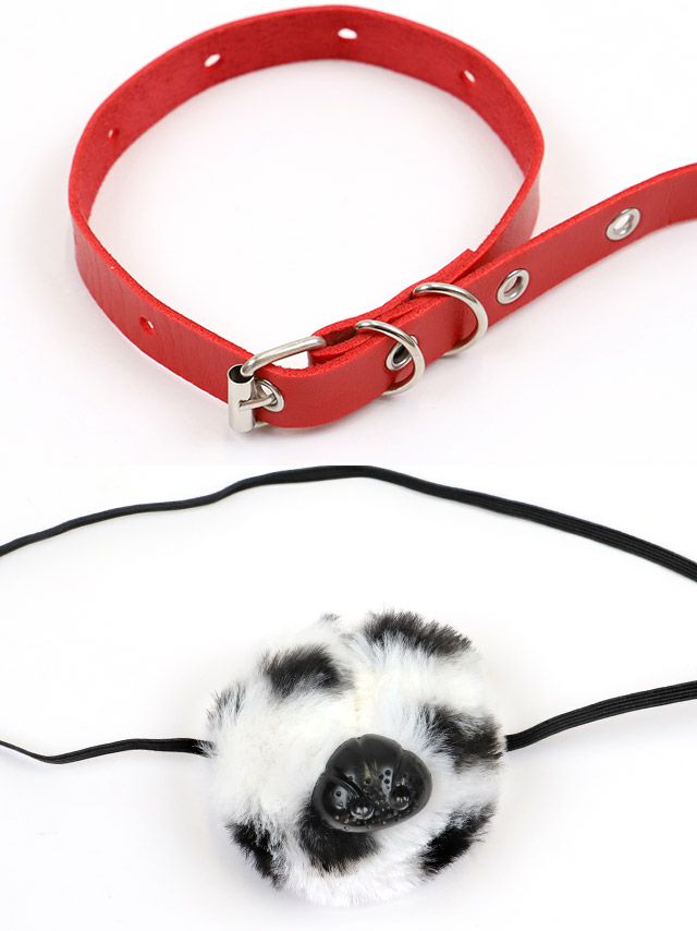 ハロウィンコスプレ ダルメシアン もこもこ ハート チュールリボン ビジュー へそ出し ガーリー アニマル 8点セット (トップス/スカート/カチューシャ/チョーカー/付け鼻/アームカバー/しっぽ/レッグカバー)のセット内容