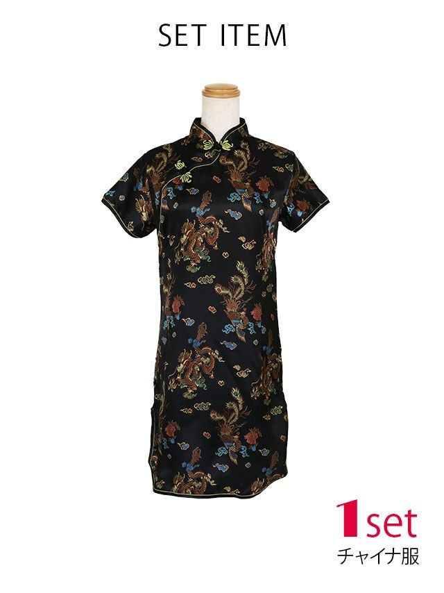 派手に楽しもう♪ [SALE] コスプレ 袖ありセクシー総柄サイドタイトプチプラチャイナ服 [1点セット] (チャイナ服)
