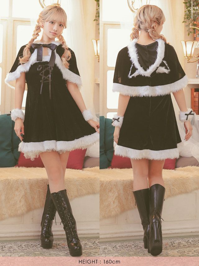 サンタコス 4点set まやりん着用猫耳ケープ付き編み上げデザインフレアスカートガーリーふわふわファーアニマルサンタコスプレのサイズ表