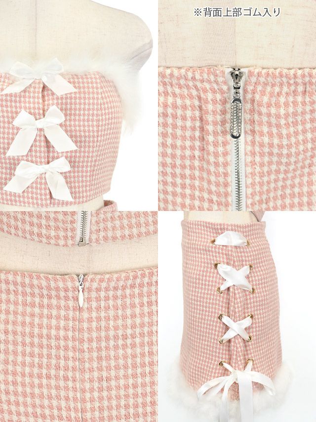 スカートサイドの編み上げでサイズ調節も可能な