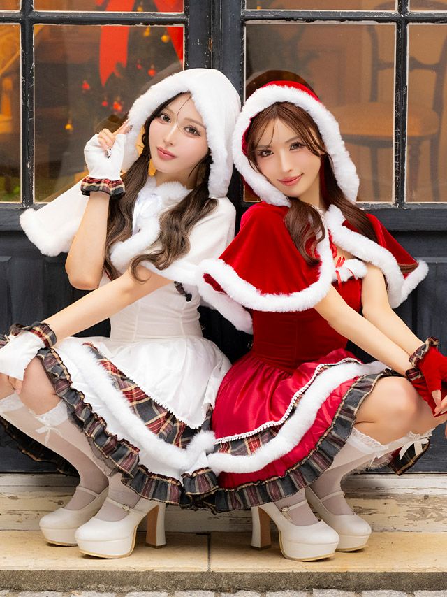 今年は定番サンタだけじゃなくて、淡い色やモコモコ素材で差をつけるのが勝ち!クマ耳やネコ耳付きのアニマル系も超人気。セクシーなオフショルやマーメイド型で、とにかく映え重視だよ!