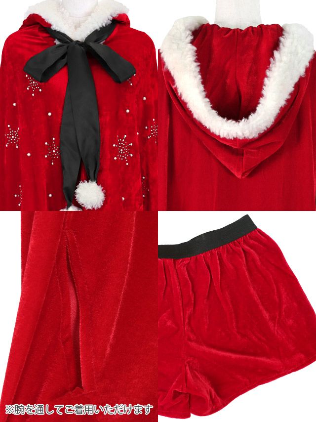 クリスタルビジューデザインフード付きポンチョサンタコスプレのセット内容