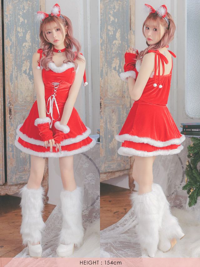 必須のサンタ帽に加えて、ファータイプのアームカバーや、手袋やベルト、網タイツなど小物でさらにコスプレを格上げ♪華やかさプラスでSNS映えにも!