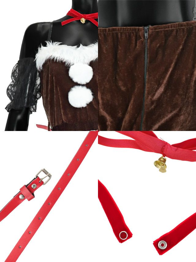 3. サンタコスプレ 5点set まやりん着用ラップフレアスカート2Wayオフショルトナカイアニマル [チョーカー+ワンピース+ベルト+カチューシャ+透明ストラップ+スカート+ベルト+ガーターリング]