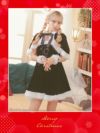 サンタコス 4点set ドットチュールフリルデザイン猫サンタコスプレの全身フロントバック画像