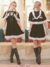 4. サンタコス 4点set まやりん着用ケープ付きふわふわファーレースアップフレアスカートガーリー猫アニマルサンタコスプレ [フード付きケープ+ワンピース+カフス+透明ストラップ]
