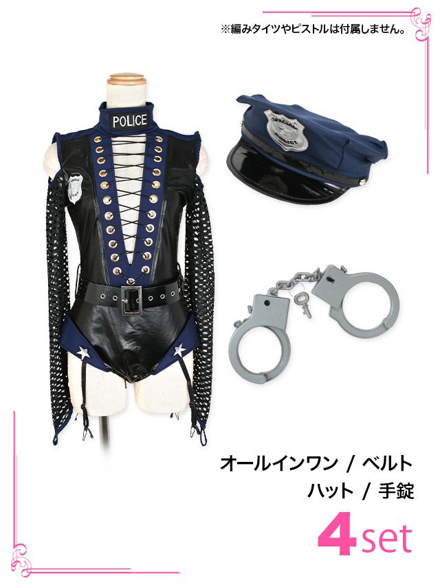 4. [コスプレ] ハイネックレースアップセクシーインポート袖ありポリス [4点セット] (オールインワン/ベルト/ハット/手錠)