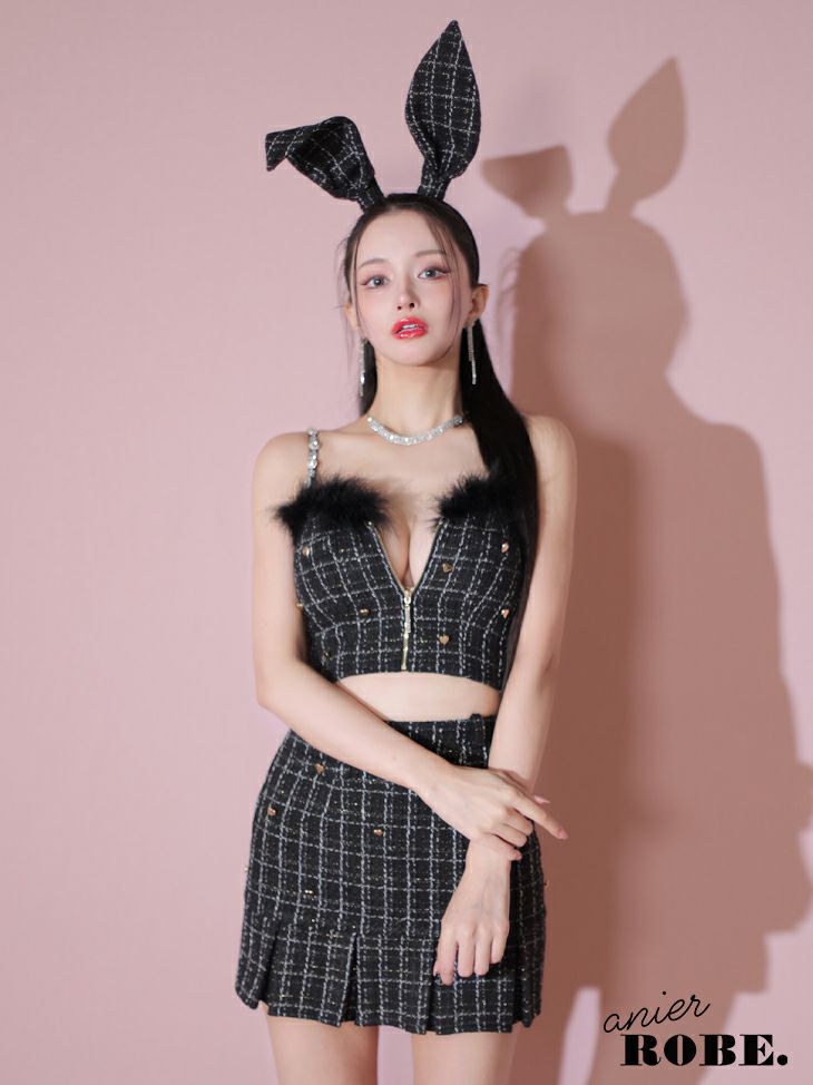 4. [ANIER./アニエル] 高級ハートスタッズツイードビジューキャミソールジップバニーコスプレセットアップタイトミニドレス[ドレス/カチューシャ]