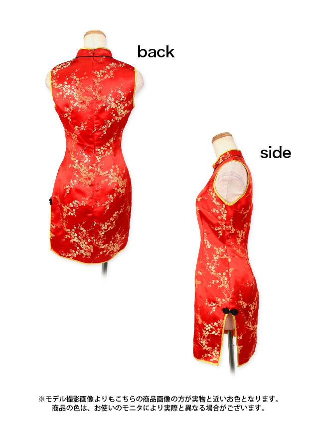ハートカットセクシーチャイナドレス ハロウィンコスプレ2点セットのフロントバック全身