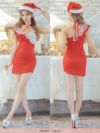 5. サンタコス 2点set シアーワンショルフリルクロスツイードラメサンタコスプレドレス [ワンピース+サンタ帽子]