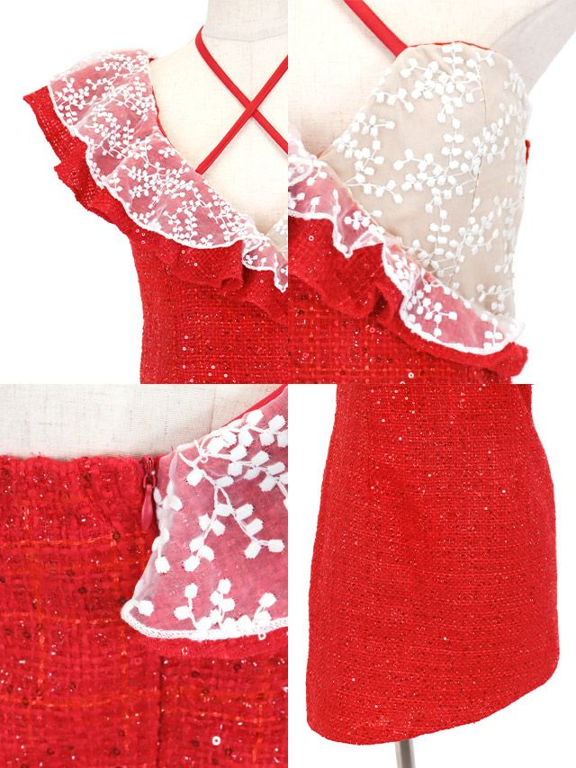 サンタコス 2点set シアーワンショルフリルクロスホルターネックツイードラメサンタコスプレの商品詳細