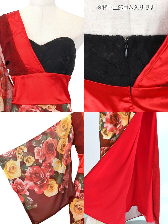花魁 セクシー ワンショル スリット ローズ 和装ドレスの詳細アップ
