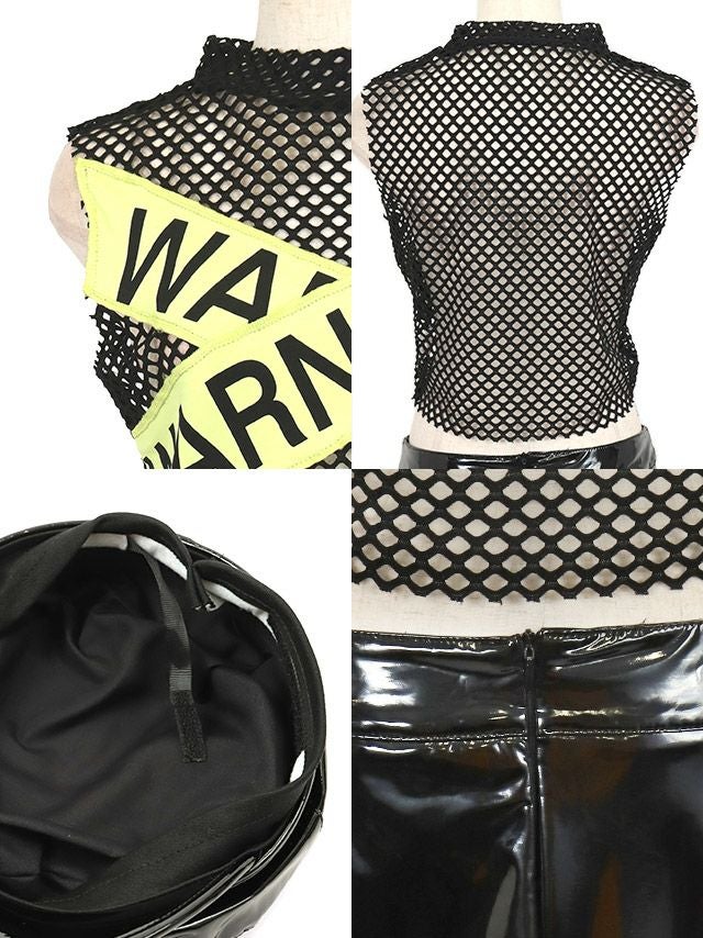 4. [コスプレ] バリケードデザインマイクロミニセットアップへそ出しセクシーポリス [3点セット] (トップス/スカート/帽子)