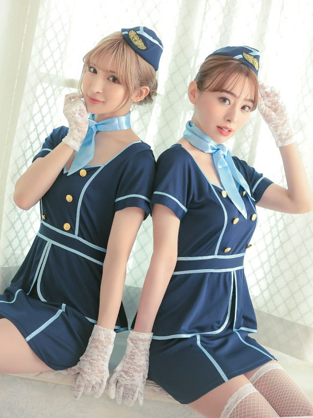 清楚なお姉さんCAコスプレ♪ [コスプレ] ブルーバイカラー体型カバーツインスチュワーデス [5点セット] (ワンピース/スカーフ/手袋/ミニハット/ヘアピン)