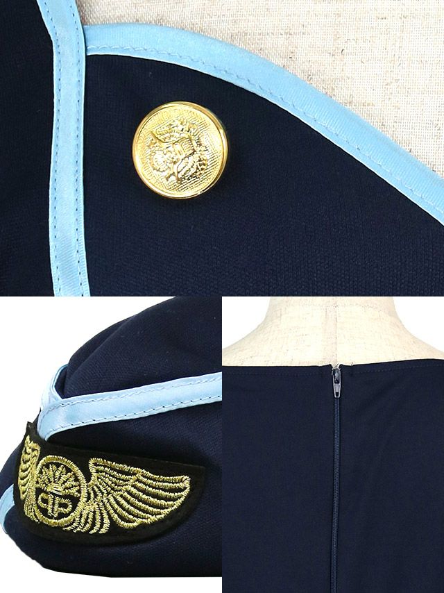 ブルーバイカラースチュワーデスコスチュームセットの商品詳細