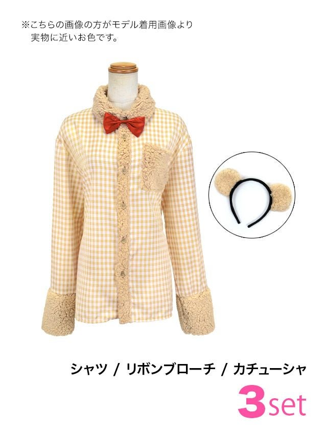 3. [コスプレ] 袖ありチェックシャツガーリーテディベア体型カバーツインアニマル [3点セット] (カチューシャ/シャツ/リボンブローチ)