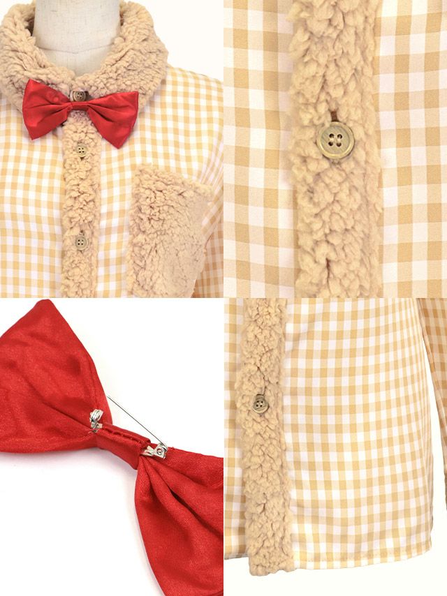 袖ありチェックシャツガーリーテディベア体型カバーアニマルの詳細アップ