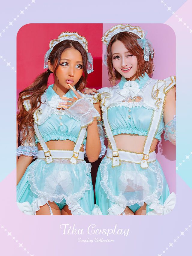 4. [SALE] コスプレ ラブリーリボンへそ出しツインセクシーガーリーツインメイド [10点セット] (カチューシャ/付け襟/チャーム/トップス/エプロン/付け袖/カフス/スカート/ショーツ/ガーターリング)