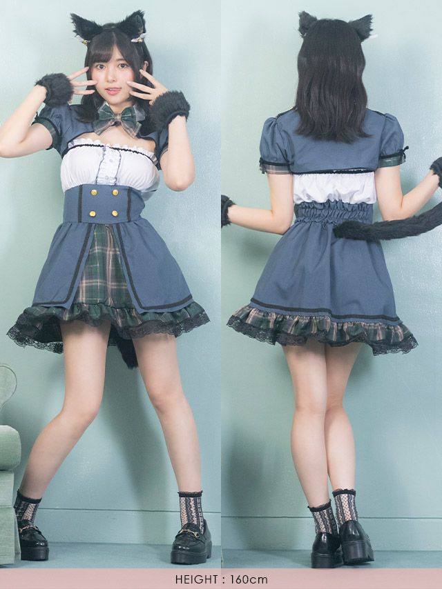 5. [SALE] コスプレ 猫 体型カバー メイド 制服 フレアスカート クラシカル ガーリー アニマル 7点セット (リボンブローチ/ジャケット/ワンピース/カチューシャ/透明ストラップ/カフス/しっぽ)