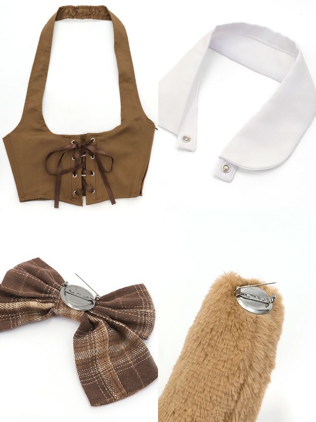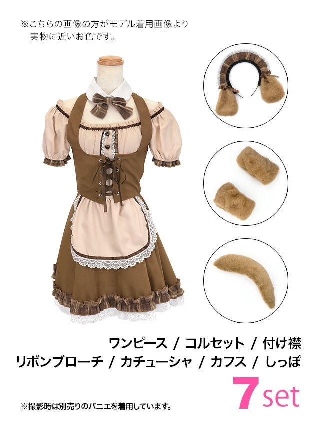 5. [コスプレ] メイドデザイン体型カバーフレアスカートガーリー犬アニマル [7点セット] (ワンピース/カチューシャ/付け襟/リボンブローチ/コルセット/カフス/しっぽ)