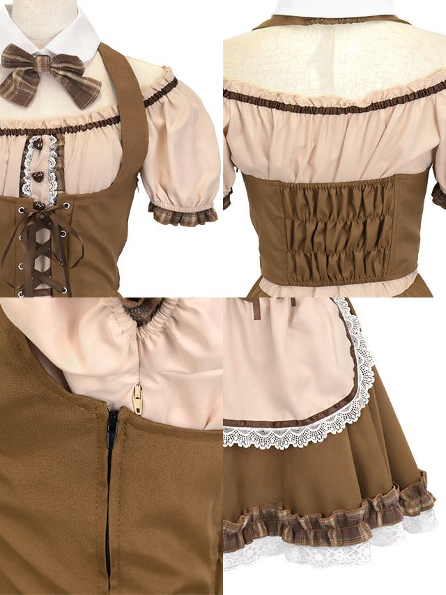 4. [コスプレ] メイドデザイン体型カバーフレアスカートガーリー犬アニマル [7点セット] (ワンピース/カチューシャ/付け襟/リボンブローチ/コルセット/カフス/しっぽ)