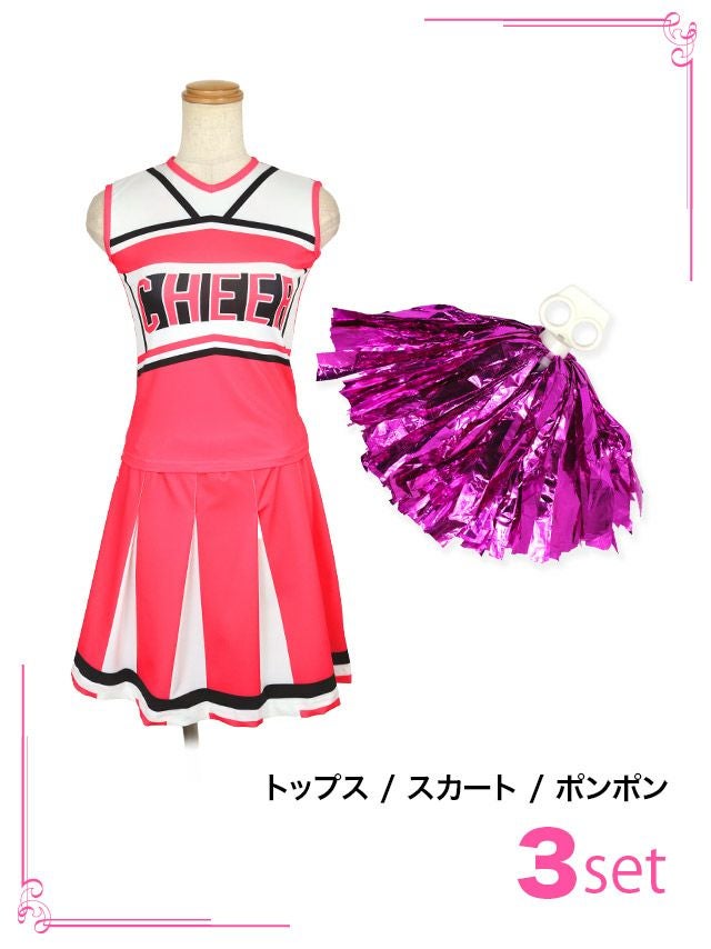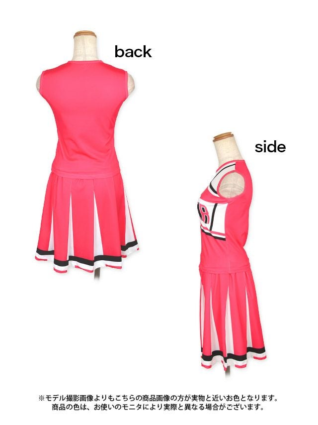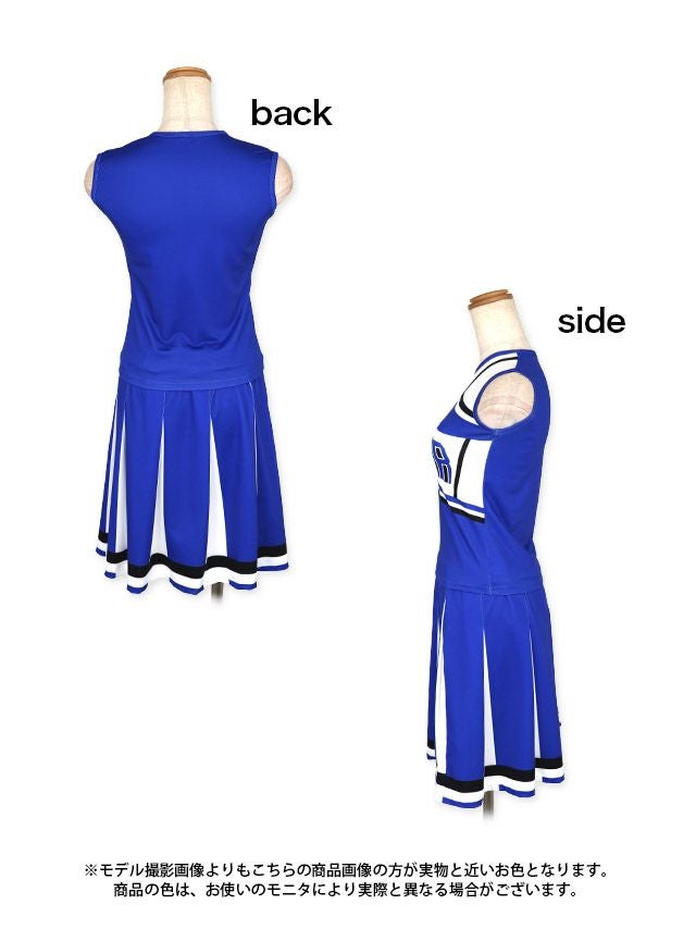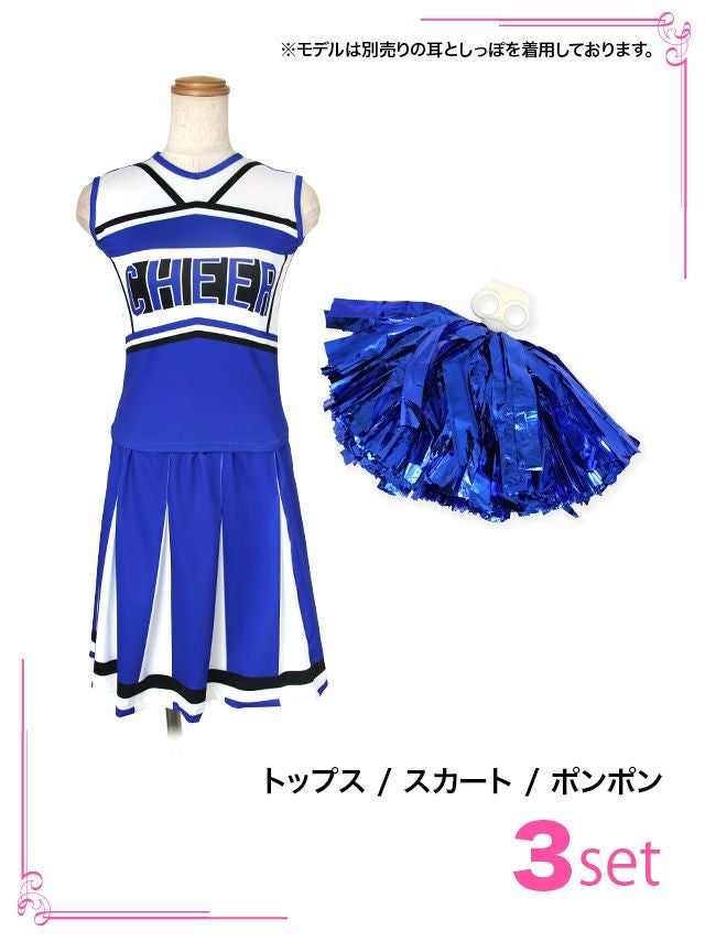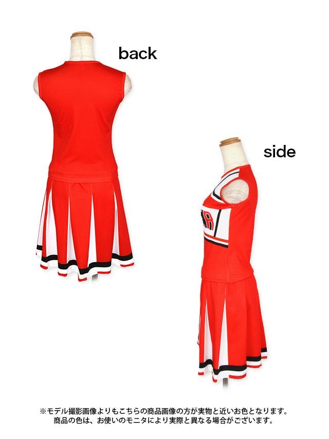 元気いっぱいチアガールになれちゃう♪ [コスプレ] ポンポン付きセットアップツインフレアスカートアメリカンチアガール [3点セット] (トップス/スカート/ポンポン)