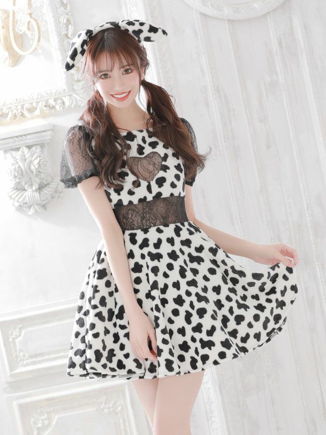 コスプレ衣装 セクシーブラックレース映えダルメシアンアニマル ハロウィン コスプレ2点セット