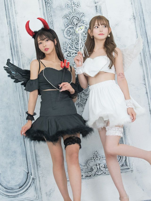 双子コーデで可愛さ倍増♪ [コスプレ] ウィング付き胸元ハートフレアスカートツインセクシーガーリーエンジェル&デビル