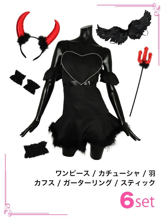 ハロウィンコスプレ ウィング付き胸元ハートフレアスカートペアセクシーガーリーエンジェル&デビルのセット内容