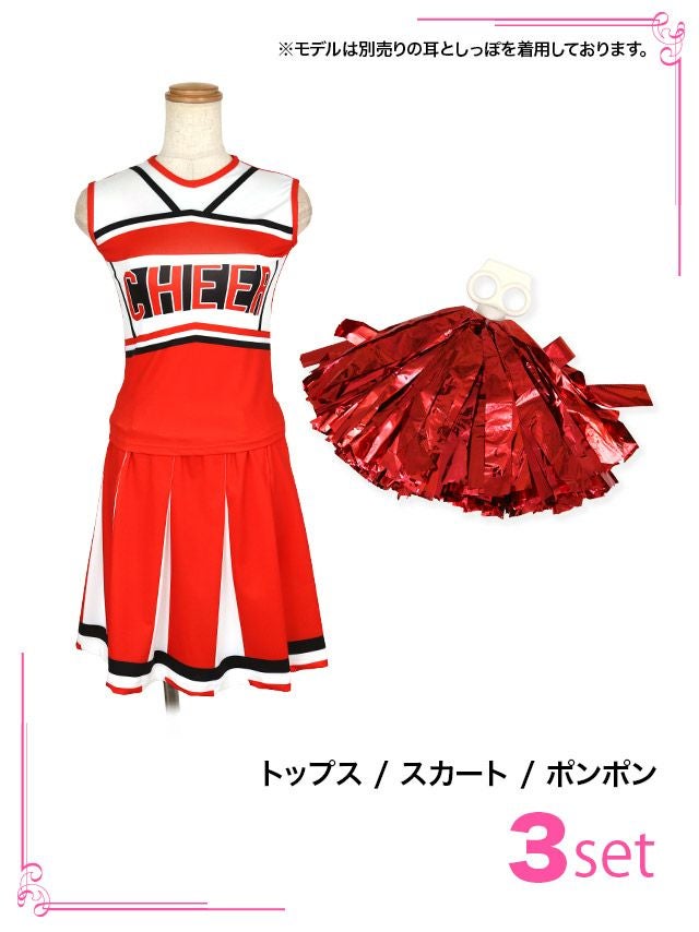 ハロウィンコスプレ 3点set チアポンポン付きCuteセットアップポップチアガールのレッドセット内容
