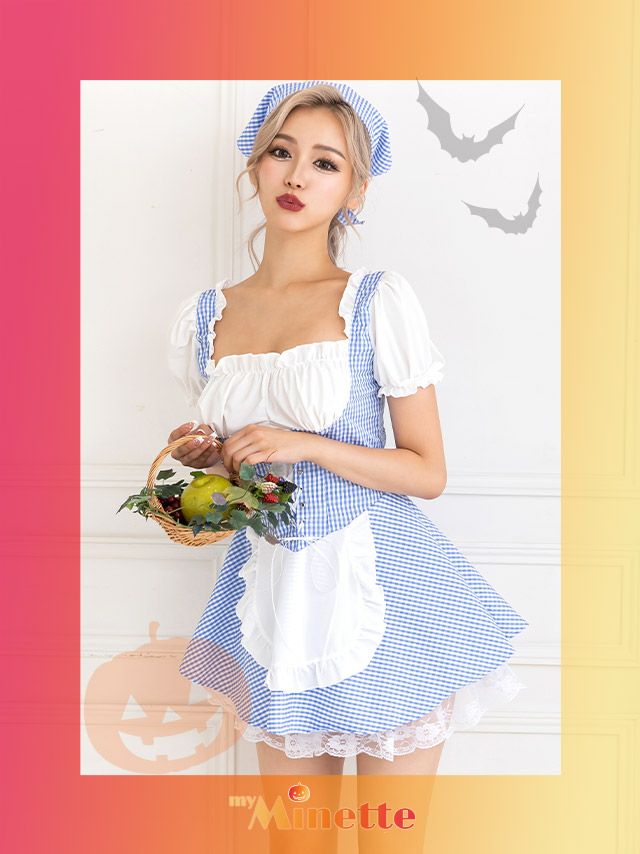 ハロウィンコスプレ 2点set フリルギンガムチェックCuteメイドのセット内容