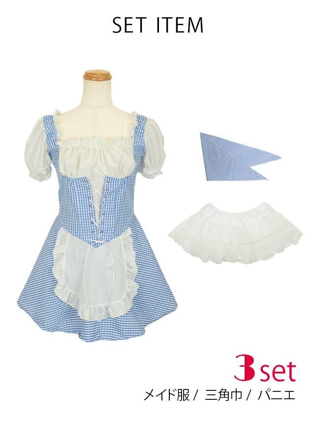 コスプレ フリルギンガムチェックフレアスカートプチプラメイド [3点セット]