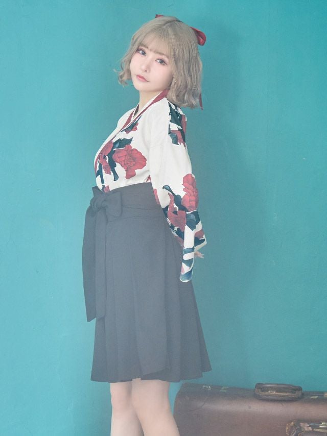 4. [SUPER SALE] コスプレ 袴 レトロ ミニ丈 体型カバー 和装 [3点セット] (トップス/袴/リボン2本)