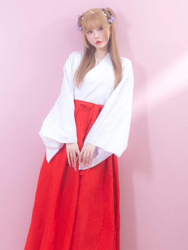 5. [SUPER SALE] コスプレ 巫女 コスプレ 体型カバー 袖あり 長袖 ロング丈 和装 ツイン ガーリー 2点セット (上衣/袴) femme fatale×Tika