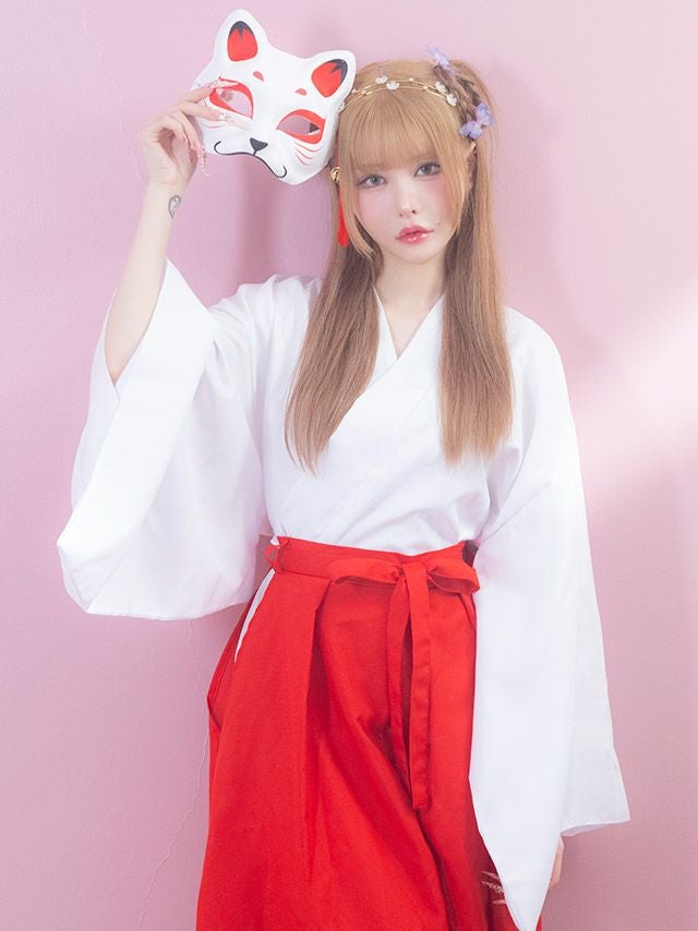 3. [SUPER SALE] コスプレ 巫女 コスプレ 体型カバー 袖あり 長袖 ロング丈 和装 ツイン ガーリー 2点セット (上衣/袴) femme fatale×Tika