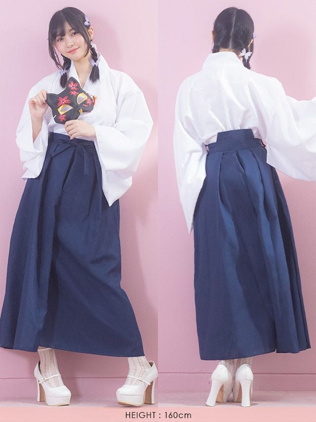 巫女 コスプレ 体型カバー 袖あり 長袖 フレアスカート 和装 ツイン ガーリー 2点セットのフロントバック全身