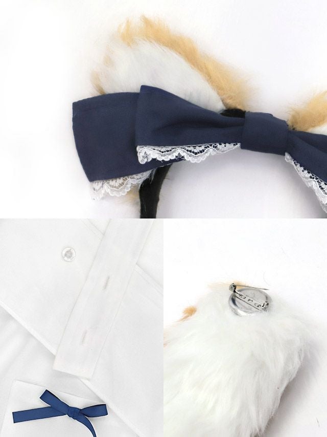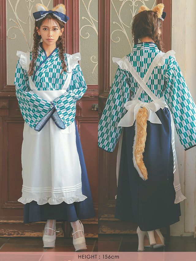 4. [SUPER SALE] コスプレ 袴 和装 袖ありロング丈 体型カバー犬メイドアニマル [4点セット] (ワンピース/エプロン/カチューシャ/しっぽ)