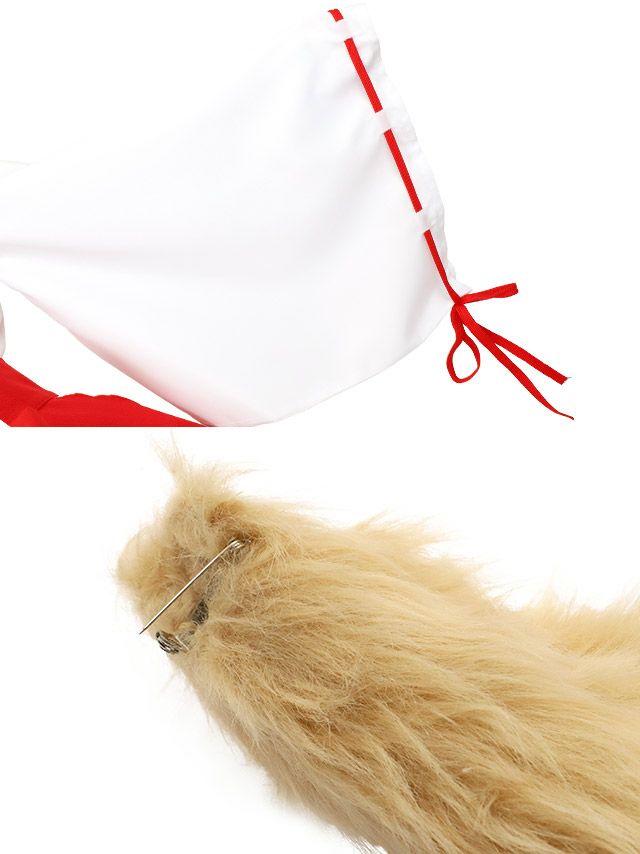 5. [コスプレ] 巫女 狐 新年 正月 お化けの日 和装 体型カバー フレアスカート アニマル [4点セット] (トップス/スカート/カチューシャ/しっぽブローチ)