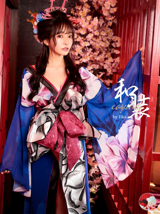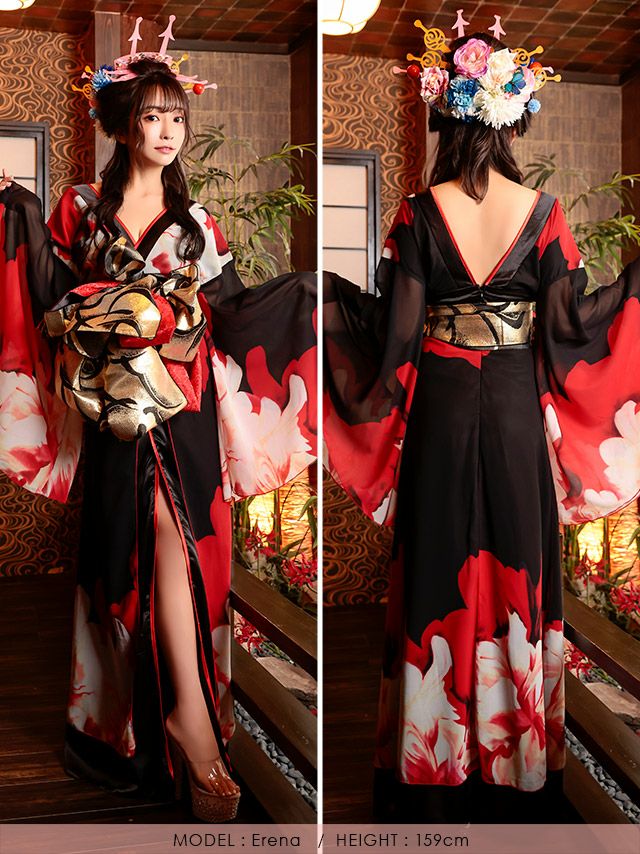 3. [SALE] コスプレ 花魁 桜まつり 花柄 和装 谷間 セクシー ロングドレス [着物]
