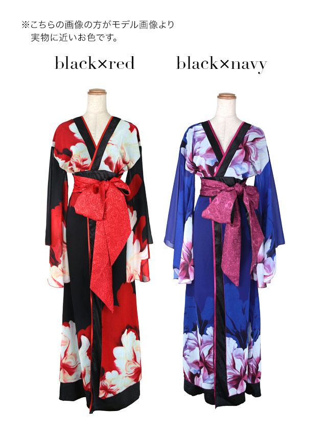 花柄和テイストロングドレスのセット内容