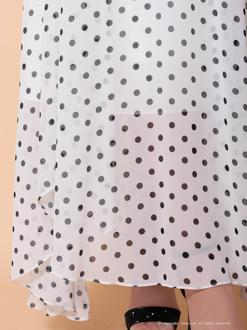 ドット柄がガーリーな雰囲気★ [Andy/アンディ] 高級 ノースリーブ ウエストカット ドット クロスデザイン シアー フレア ミニドレス