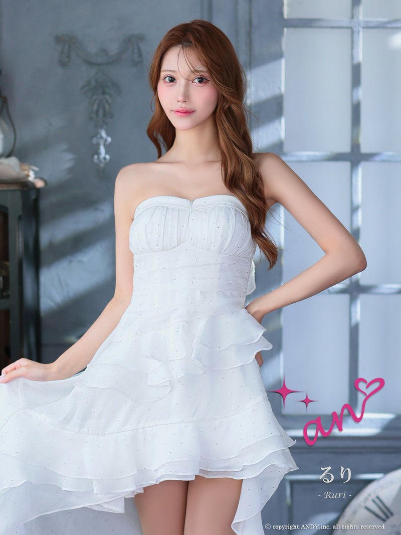 キャバドレス an アン 高級 Aライン ロングテール 谷間 シンプル ドット柄 キャミソール ジップ ビジュー フリル 大人