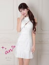 キャバドレス an アン 高級ノースリーブジップドット柄風ビジューフレアミニドレス
