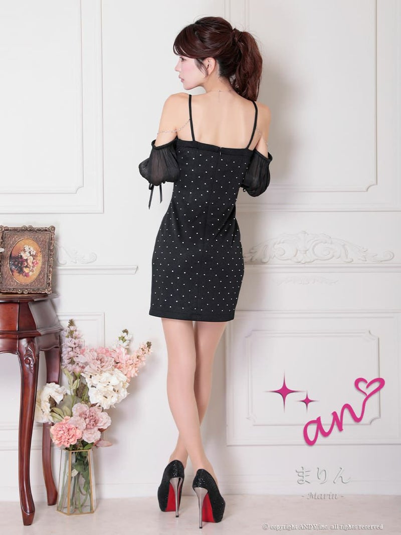 4. [an/アン] 高級 2way 長袖 キャミソール ジップ ドット柄 レース リボン 谷間魅せ タイトミニドレス