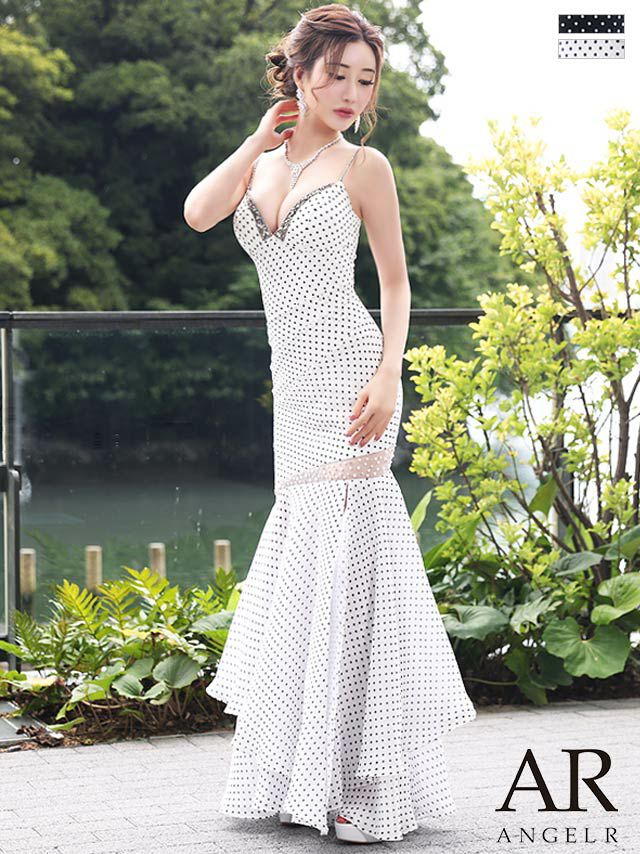 ドットが大人可愛い1着☆ [Angel-R/エンジェルアール] 高級キャバドレスマーメイドドット柄タイトロングドレス
