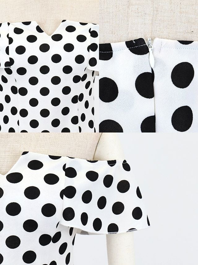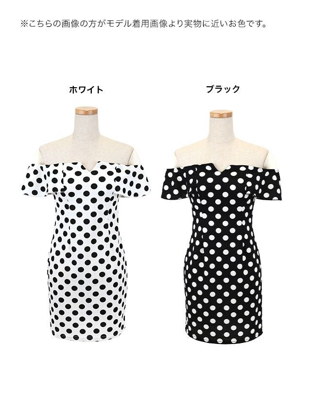 2wayデザインで可愛くチェンジ♪ 安い タイトミニドレス 谷間 オフショルダー 大きいサイズ シンプル 大人 ストレッチ ドット柄 半袖 ブラジャーのまま 2way (あいみん着用)
