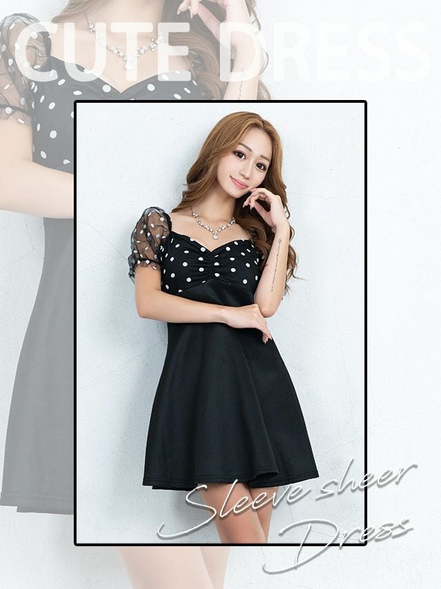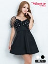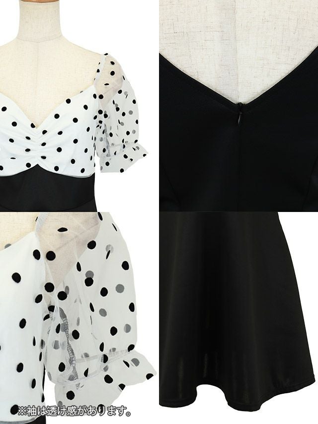 半袖チュールドット柄ハイウエスト切替フレアミニドレス